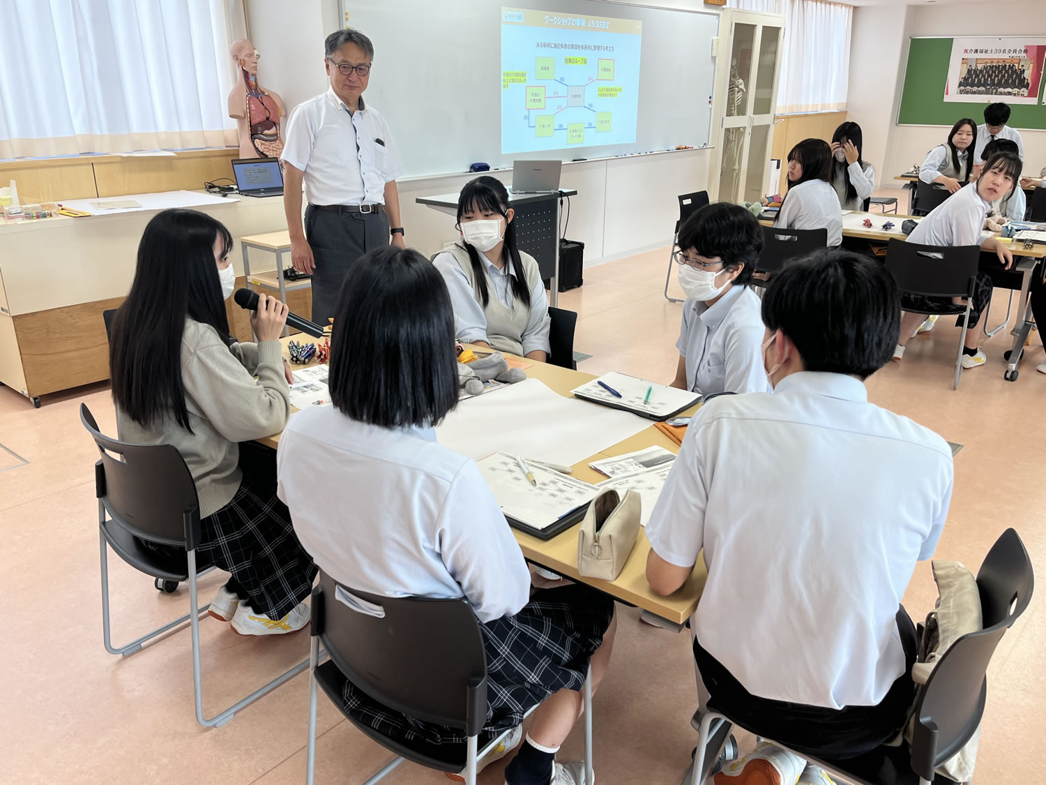 Project CHANGE conducts annual outreach classes on science related to reducing the burden of nursing and caregiving amid declining birthrates and aging populations at both this Welfare Department and the Science Department of Kawasaki Municipal Kawasaki Comprehensive Science High School. This year, as a first-time initiative, a joint workshop for both schools is planned. In preparation, a group work session was recently held at Kawasaki High School's Welfare Department to comprehensively systematize the factors related to “caregiving burden.” While various care products are being developed, many still place significant strain on the back. Additionally, care techniques requiring further technological development remain numerous, such as changing sheets while patients are lying down (where even a single wrinkle can cause pressure sores). Some expressed excitement about the upcoming discussions with students from Kawasaki City High School of Science and Technology. Furthermore, the conversation extended to the role of health education in schools, as it was noted that if everyone possessed more knowledge about caregiving and basic techniques, the quality of care would improve. In fact, at this school, students themselves conduct care classes for elementary school children during summer vacation, emphasizing the importance of fostering greater public interest in caregiving.