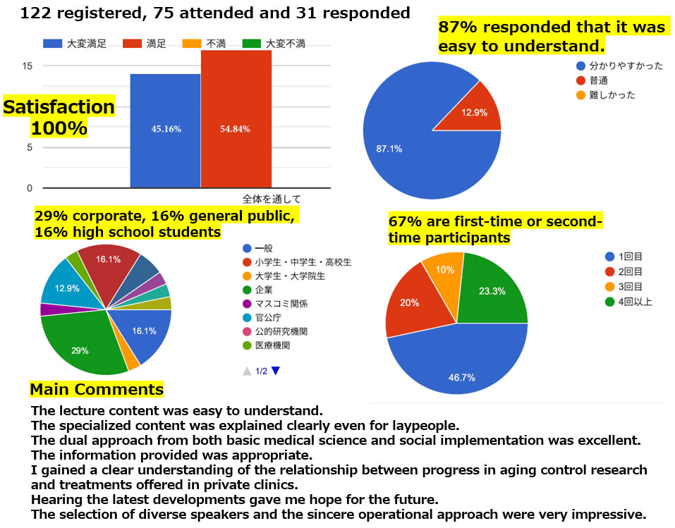 On February 15th, as part of the “Longevity Technology (Ageing Control Technology)” initiative, which forms one pillar of Project CHANGE's activities, we held a public lecture for citizens. Innovative research findings can sometimes lead to excessive expectations among citizens or, conversely, cause fear and confusion. Therefore, communication is needed to foster sound, progressive ethical perspectives and literacy, known as ELSI (Ethical, Legal and Social Issues). This symposium provided a forum to consider the societal implementation of scientific and technological advancements in aging control, which have the potential to impact daily life. Despite being held on a Sunday afternoon, the symposium attracted 75 attendees. It featured keynote speeches by leading cell aging researcher Prof. Akiko Takahashi (Cancer Institute, University of Tokyo Faculty of Pharmaceutical Sciences) and Prof. Nobuyuki Shirakawa (Niigata University), an expert on ELSI. This was followed by a panel discussion expanding on the keynote topics. Professor Takahashi provided a highly accessible explanation, ranging from fundamental questions like “What exactly is a senescent cell?” to molecular biological insights into how senescent cells respond to the body's elimination mechanisms. Professor Shirakawa presented case studies addressing ethical and institutional frameworks concerning humanity's desire to resist aging, emphasizing the need for discussion in this field where regulatory science is still insufficiently developed. The panel discussion featured Nikkei Biotech Editor-in-Chief Fumiko Kubota, Mr. Shirakawa from Astellas Pharma's Advocacy Department, and Tokyo University of Science graduate student Misato Miyatsu. They debated topics raised by the keynote speakers. Regarding the highly intriguing technology of “age control,” Professor Takahashi stated that while this technology, if matured, could undoubtedly overcome many age-related diseases and enable more people to live independently, there is currently no established evidence for either its efficacy or safety, so it should be approached cautiously. Mr. Kubota and Mr. Shirakawa, both knowledgeable about the pharmaceutical industry, expressed agreement with this view. Professor Takahashi's statement that “removing senescent cells could cause some adverse events” was recognized as a warning to society and a very weighty remark.