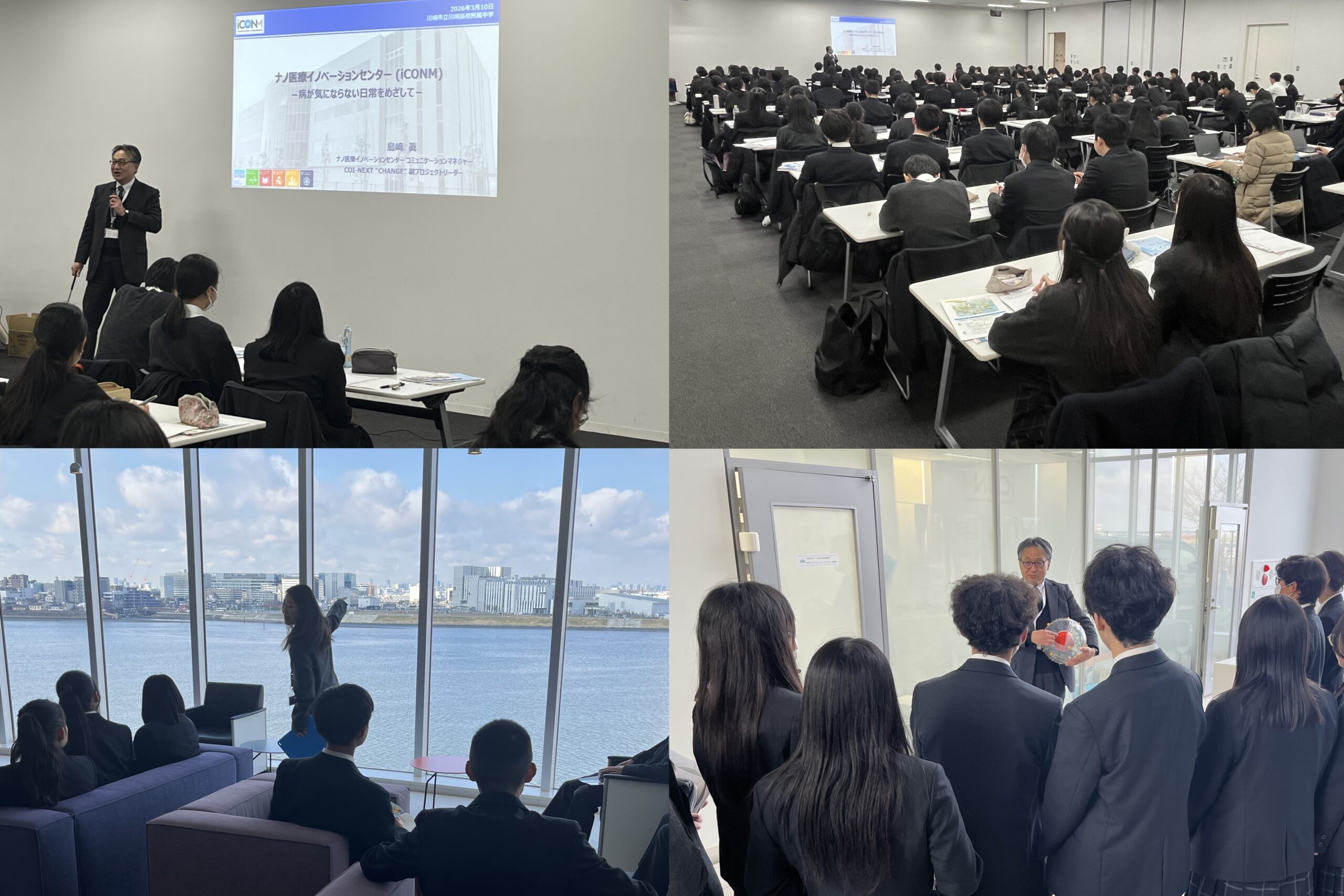 3月10日、川崎市立川崎高等学校附属中学校2年生約120名がキングスカイフロントを訪れ、そのうち約40名がiCONMを見学しました。