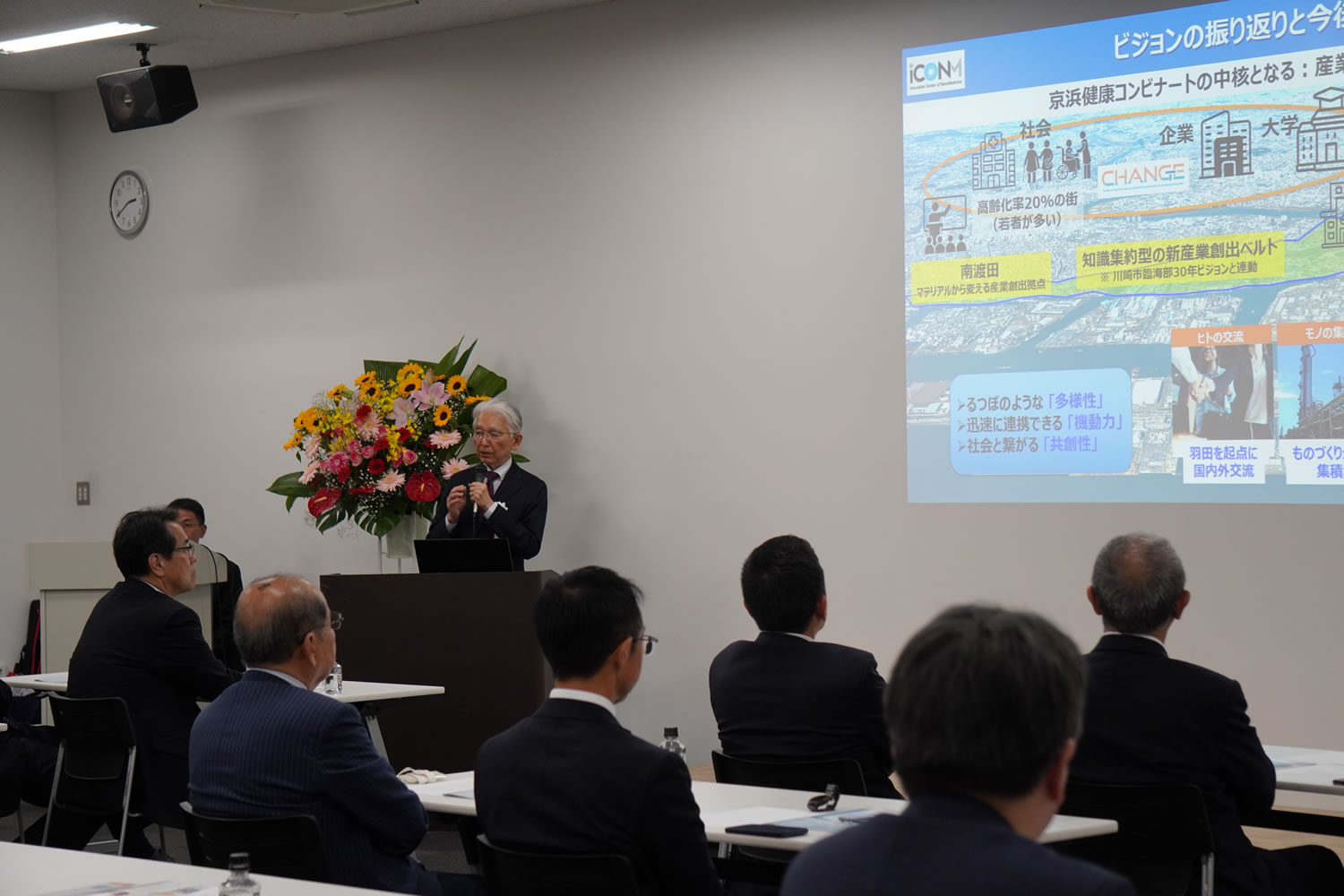 iCONM開設の計画段階からお世話になっている文部科学省様や川崎市様、2013年から2022年までのCOINSプロジェクトでお世話になった方々や2023年からのプロジェクトCHANGEでお世話になっている方々、キングスカイフロントに立地する機関や地域の方々、iCONMをご利用いただいている方々等、総勢115名の方にご参加いただき、皆様へ感謝の気持ちをお伝えするとともに、この10年を振り返る機会とすることができました。