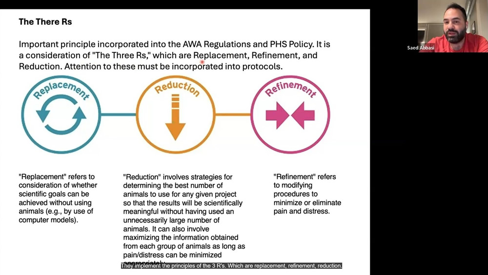 8回目となる今回は、元iCONM研究員で、現在米国ジョンズ・ホプキンズ大学でResearch Associateを務めるDr. Saed Abbasiをお招きし、米国と日本における動物実験及び実験動物の飼養保管の法規制の比較や、ジョンズ・ホプキンズ大学における機関内規定のご紹介、そして米国における動物実験代替法の最新のトレンドについてお話しいただきました。